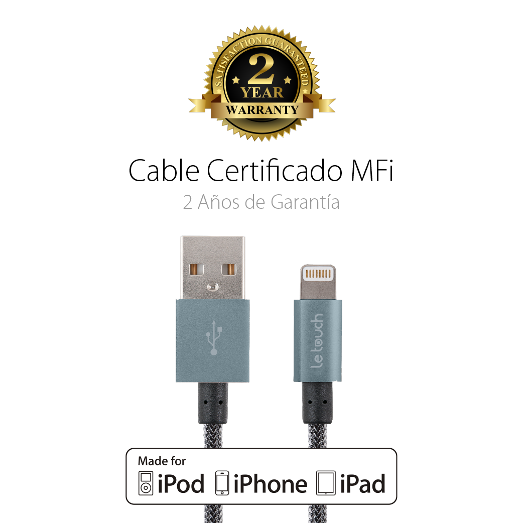 Este cable reforzado en material enmallado super resistente PET, te brinda la más alta resistencia sin perder el estilo y elegancia con sus acabados metálicos. Además de ser certificado por Apple, cuenta con 2 años de Garantía de Fabricante y tiene un acabado premium que lo hará durar a tu lado.
