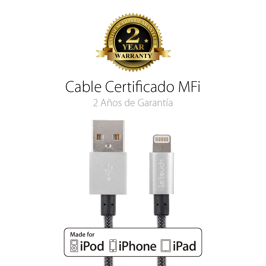 Este cable reforzado en material enmallado super resistente PET, te brinda la más alta resistencia sin perder el estilo y elegancia con sus acabados metálicos. Además de ser certificado por Apple, cuenta con 2 años de Garantía de Fabricante y tiene un acabado premium que lo hará durar a tu lado.